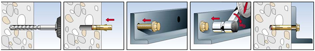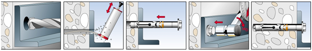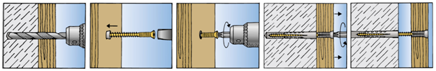 The load and the building material to which the element is to be fastened are crucial for choosing an anchoring product. If this product is mounted incorrectly, the anchor will likely not satisfy load requirements. In addition, not every product is suitable for every mounting method. Every product has specifications for drill-hole depth, anchorage depth, edge spacing and axial spacing. To achieve a reliable anchorage, the specifications of the product must be followed. Mounting an anchor begins with marking the drill holes at the location of the anchorage. After drilling and cleaning a suitable hole, the plug or anchor is positioned and fixed in place as appropriate. If elements are to be attached at two or more anchoring points, it is desirable for the drill holes to be lined up meticulously. To achieve this consistency, you can use a drilling stencil or push-through mounting.
